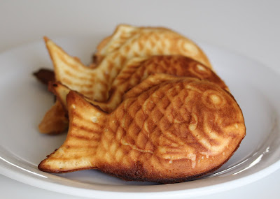 Taiyaki is Japanese cake shaped like a fish, and made of wheat flour dough baked, then filled with red bean paste.Taiyaki was first discovered in Japan in 1909, when one of the shops in the city of Minato, Tokyo, started selling it,namely Souhonten Naniwaya shop.